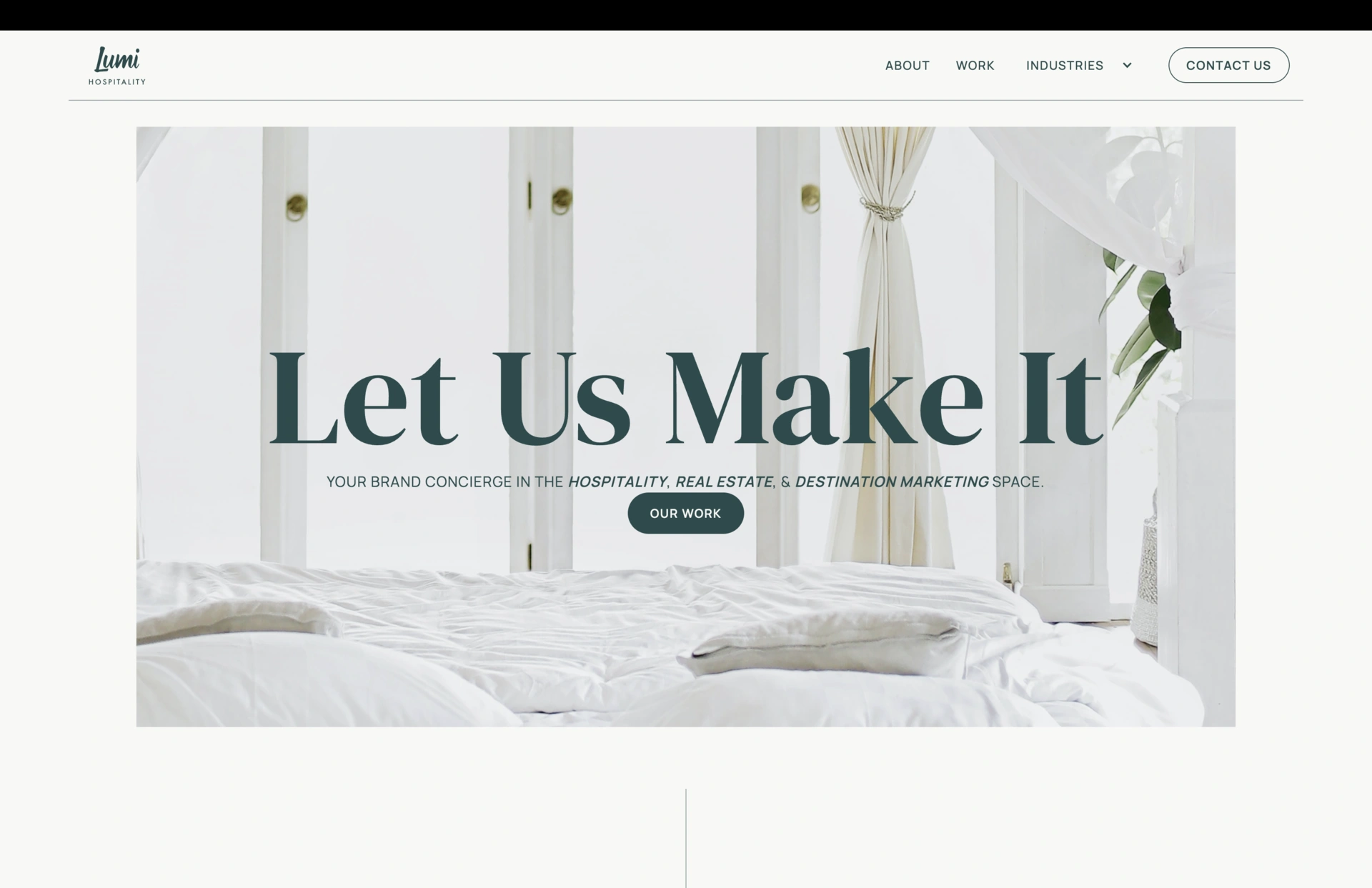 The design of Lumi Hospitality's website made in webflow is professional and visually appealing, tailored to their expertise in travel, real estate, and destination marketing. It features a clean, modern layout with compelling imagery and a well-organized structure that showcases their services and past work. The website uses a balanced color scheme and clear typography to enhance user experience, effectively communicating their brand identity and the scope of their services in a sophisticated yet accessible manner.