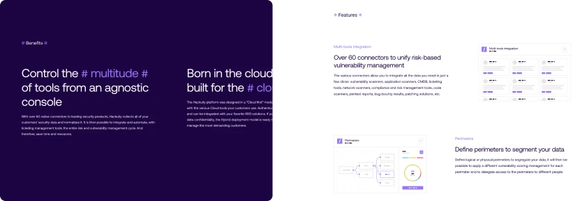 Using clarity as a core concept to drive the verbal and visual communication, Hackuity website has a cohesive story.