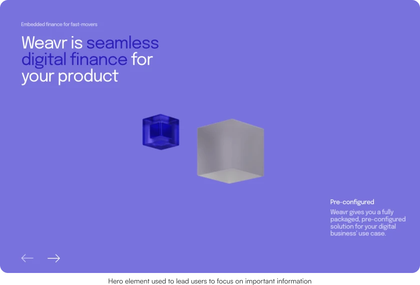 Weavr tactically utilises a hero element to facilitate user navigation through the information. By empowering the user, Weavr avoids overwhelming them with an excessive amount of information.