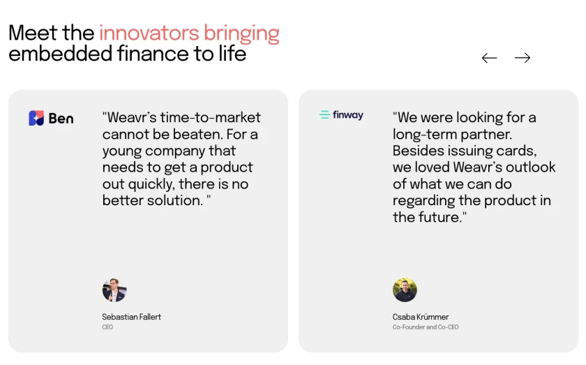 - Testimonials play a crucial role in building credibility and trust among prospective clients. Weavr enhances this trust by including credentials and company logos, reinforcing their reputation.