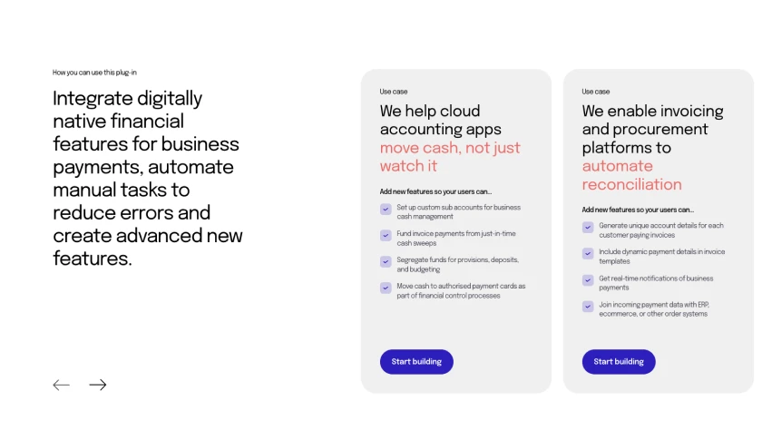 - The call-to-action buttons feature compelling copy like "Start building," creating a sense of empowerment and engagement for users.